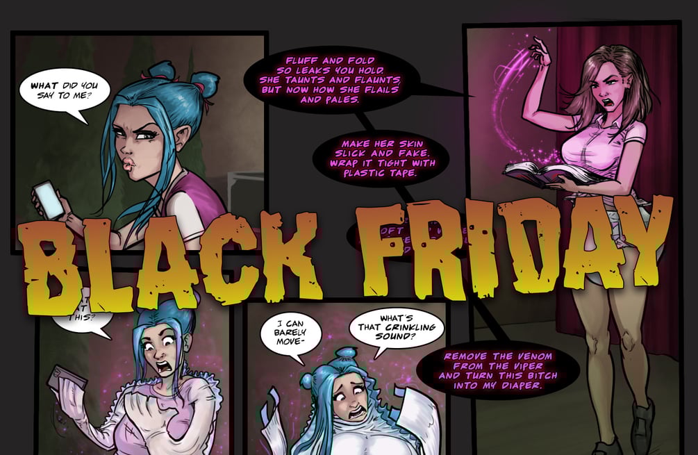 Black Friday: A commercialized pop princess @NightlySheFunk is a british brat whose plans are about to change when she switches from promoting clothes to big puffy diapers. What will her followers think?